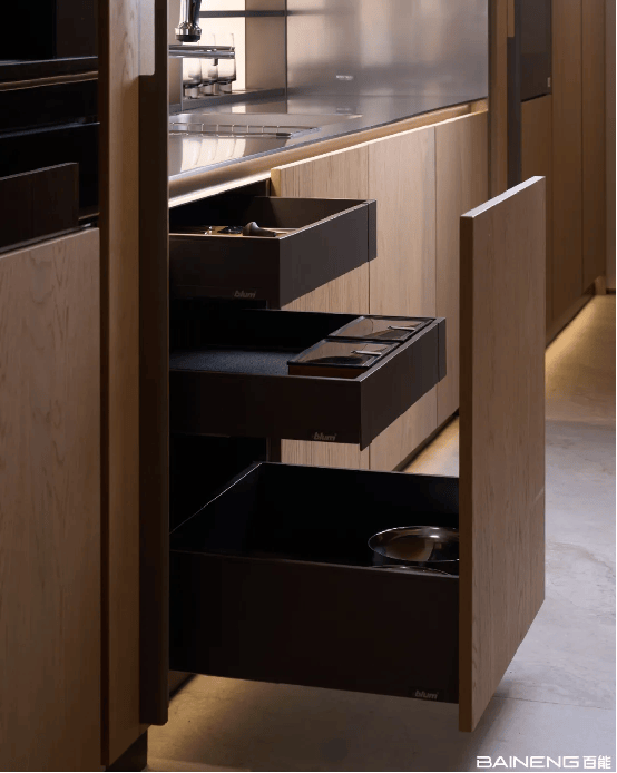 百隆集团(Blum)源自奥地利,是全球五金功能件及配件的顶尖品牌和领导者,以其革命性的铰链、抽屉系统、上翻门系统等创新产品闻名于世。
