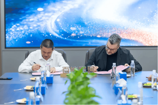 在全体与会嘉宾的共同见证下,签约仪式正式举行。 百能家居董事长胡双喜先生与百隆中国总经理David Michael Castonguay先生作为双方代表,庄重地在战略合作协议上签字。两位领导亲切握手并合影留念,标志着携手共赢未来的崭新篇章全面开启。