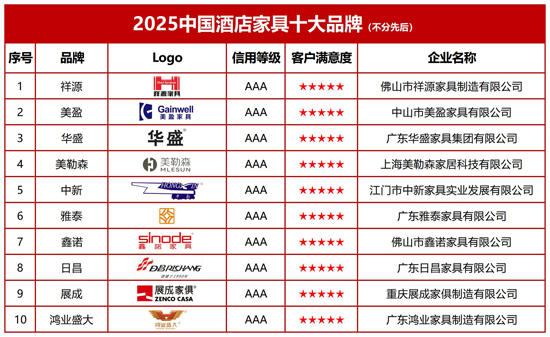 近日,由招投标供应链品牌推介平台举办的2025(第八届)中国办公及商用家具评价推介活动圆满落幕,祥源、美盈、华盛、美勒森、中新、雅泰、鑫诺、日昌、展成、鸿业盛大等品牌凭借在技术创新、智能制造、绿色发展实践、场景化服务能力、市场竞争力及社会责任等优异表现,入选“2025中国酒店家具十大品牌”。活动依托平台海量家具招投标大数据资源,通过企业自主报名,融合客户满意度调研、第三方质检报告、环保认证数据及质检、认证、环保、行业协会专家综合评审构建起完善而科学的评价体系。旨为树立行业“中国品牌”标杆,提升优质品牌市场知名度和影响力,推动行业升级转型高质量发展。同时也为全国各级酒店、地产、文旅机构精准选型作参考,助力采购方实现品质、成本、可持续性的平衡。