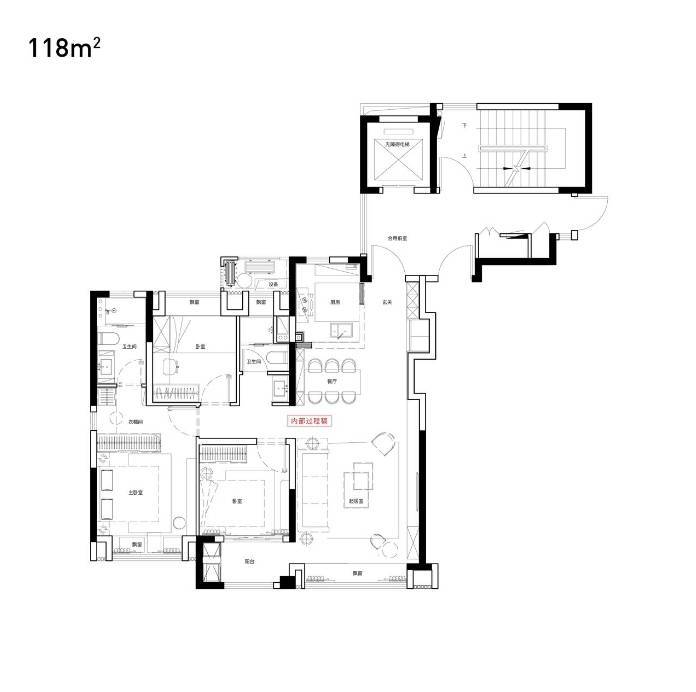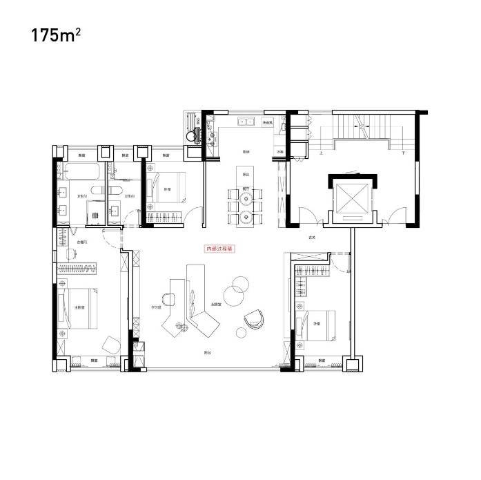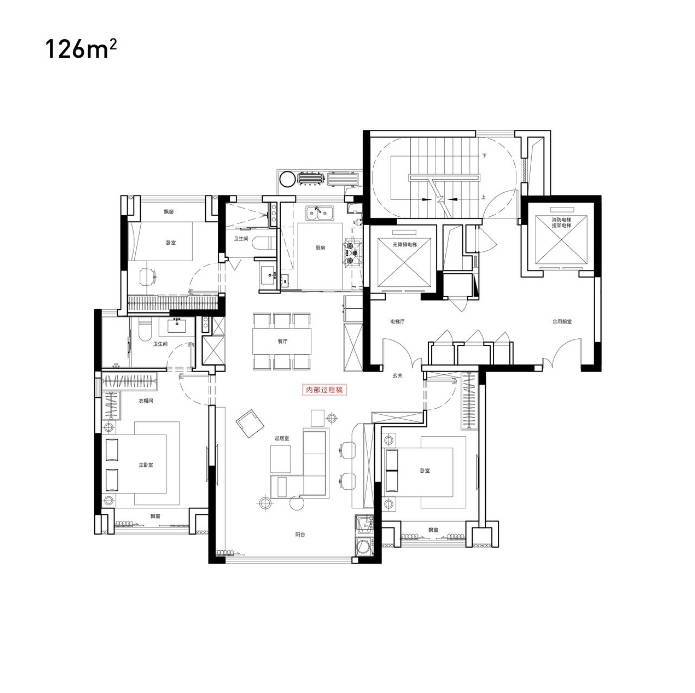 厨房采用 L 型设计,操作台面宽敞,与餐厅紧密相连,餐厅面积约 8㎡,可容纳 6 人餐桌,满足家庭用餐需求,若有亲友来访,也能轻松容纳。厨房预留了洗碗机、烤箱等家电位置,适配现代家庭的烹饪需求,减轻家务负担。公共卫生间位于北向次卧与南向次卧之间,采用干湿分离设计,使用方便,同时配备了扶手、防滑地砖等适老化设计,方便老人使用,体现了全龄友好的理念。该户型动静分区明确,活动区域与休息区域互不干扰,空间舒适度高,既能满足刚改家庭的居住需求,又能兼顾老人与孩子的生活便利,是全龄宜居的优质选择。